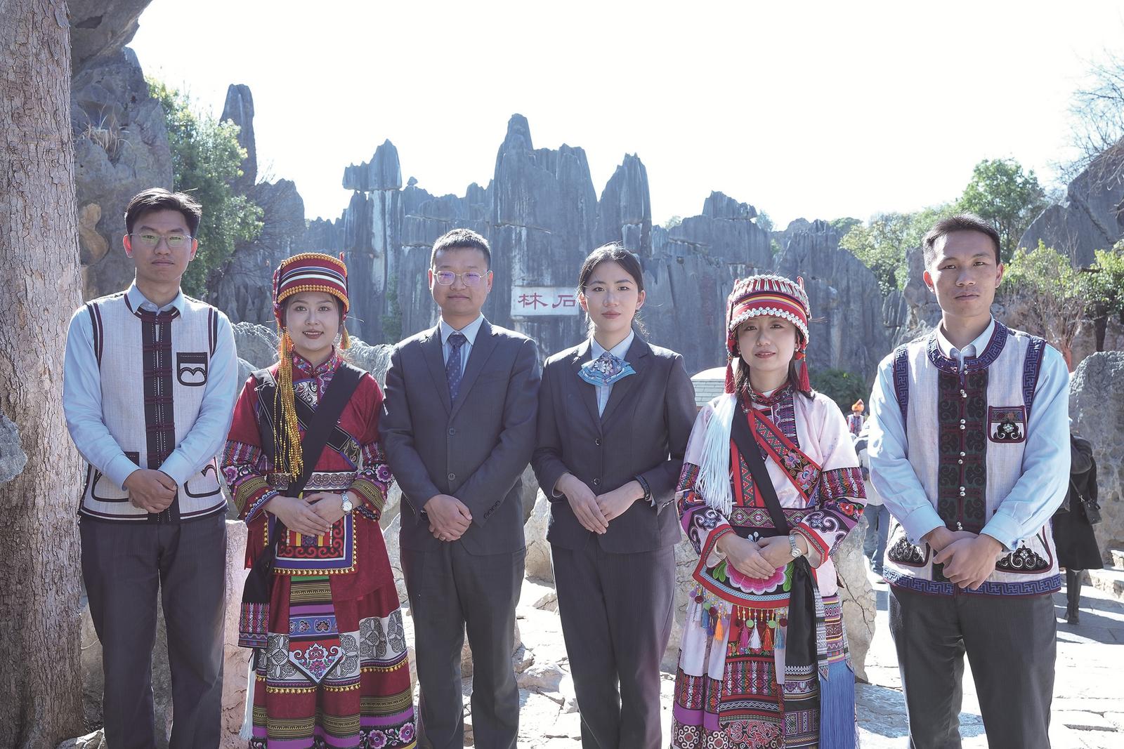 节日期间,农行昆明石林支行客户经理身着民族服装在景区做宣传