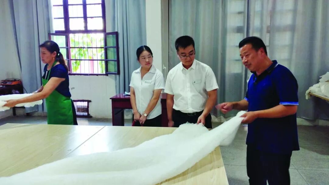 “拉棉的时候,会根据前几层的厚度来调整站位和力道。遇到厚处发大力,遇到薄处发小力,哪里没拉满就调整站位在这个地方多拉一些,这样拉出来的丝网更加均匀,盖着才更贴体舒适。”一名工人一边拉棉,一边介绍说。从种桑养蚕开始,到做出蚕丝被成品,要经过多道工序,其中的每一道工序都有自己的门道,必须坚持标准,才能做出一床高品质的手工蚕丝被。