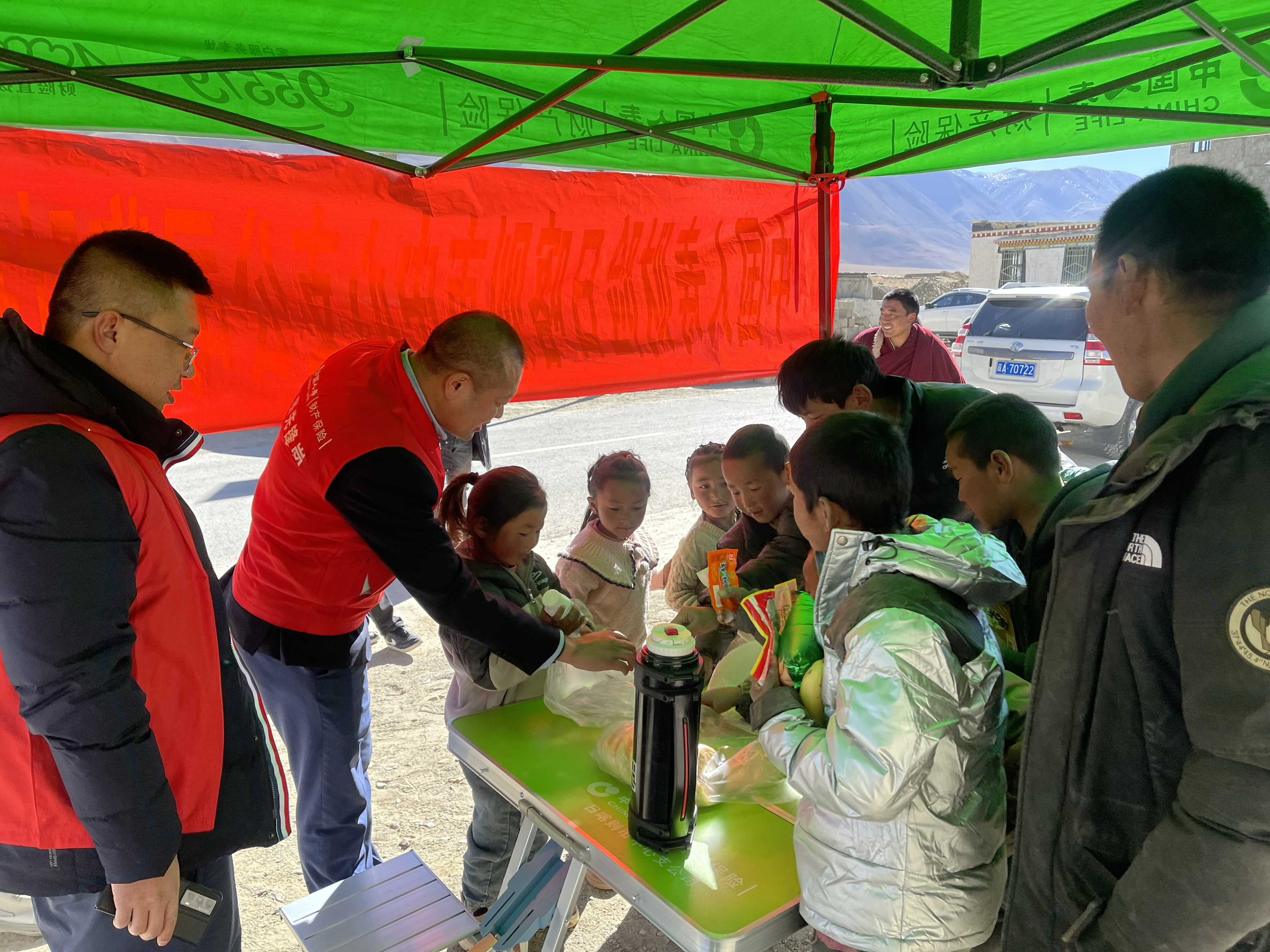 中国人寿财险西藏分公司工作人员在日喀则定日县措果乡为受灾群众提供暖心服务