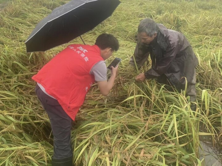 人保财险理赔查勘员到水涝点、受灾农户田间、受灾企业开展查勘理赔服务 人保财险供图