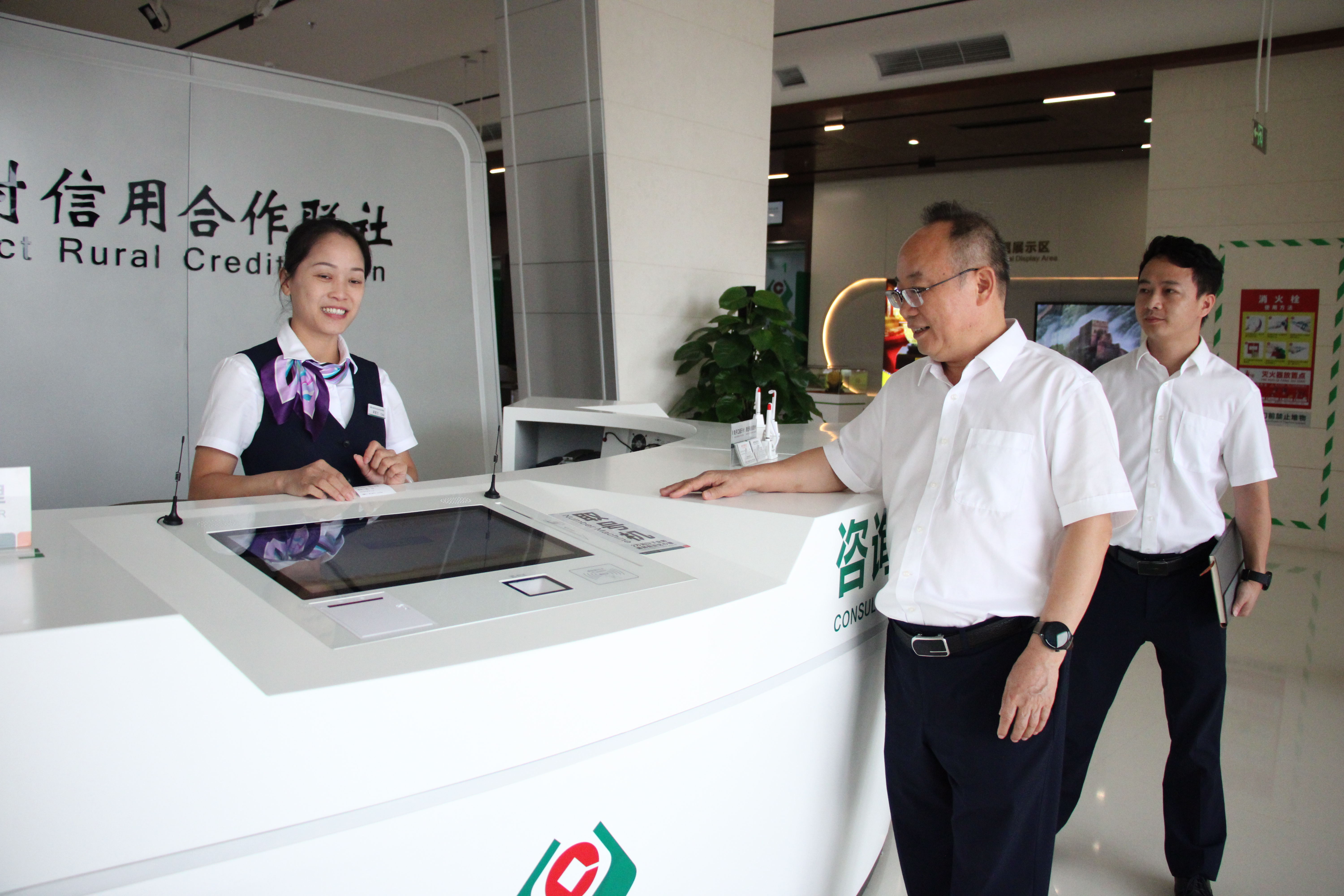 玉林市区联社党委书记、董事长朱显驹到营业部指导工作 韦安源/摄