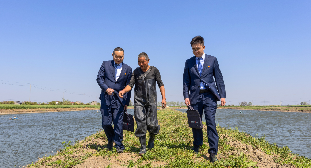 高邮农商银行工作人员走访当地养殖户 高邮农商银行供图