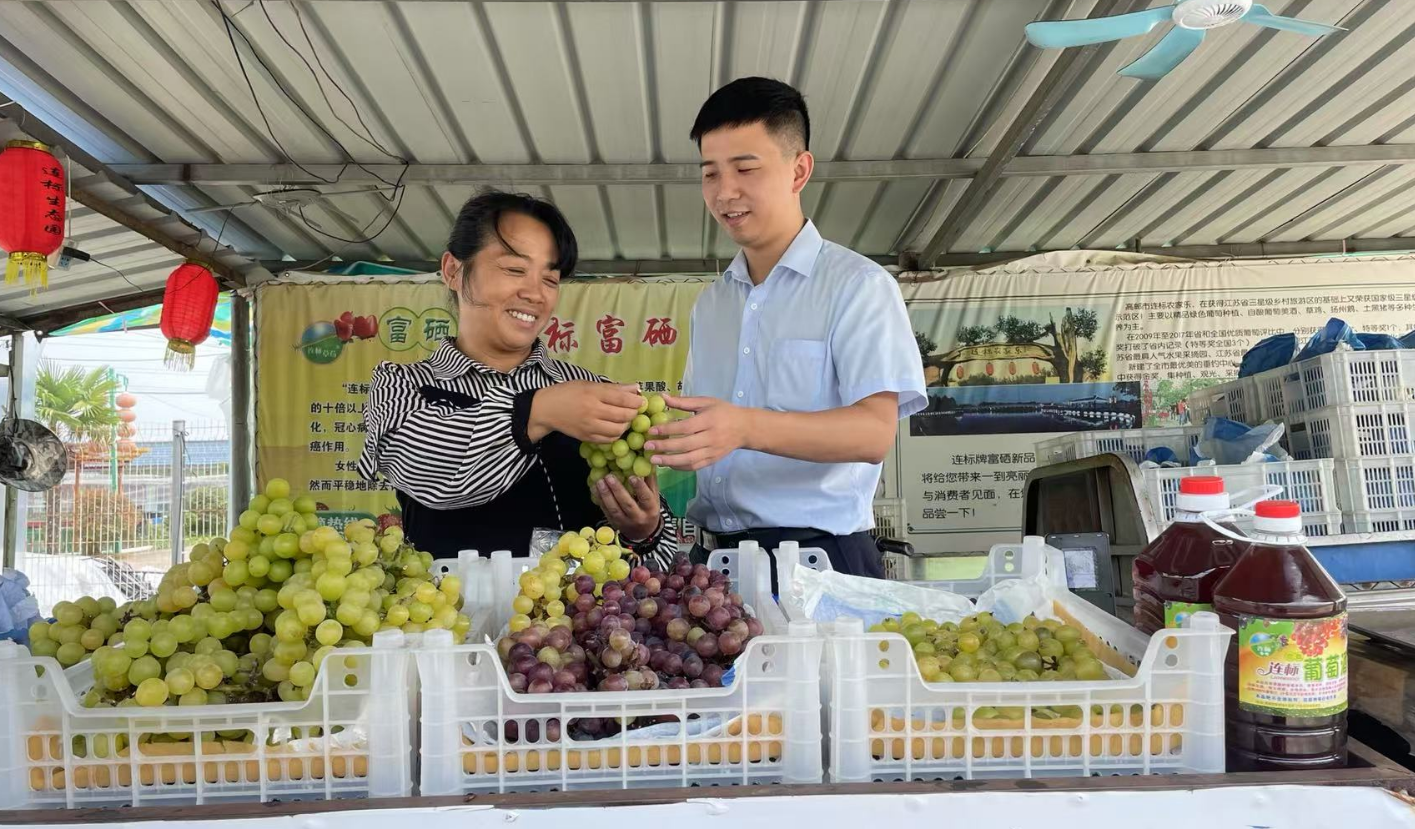 高邮农商银行工作人员实地走访了解葡萄产销情况 高邮农商银行供图