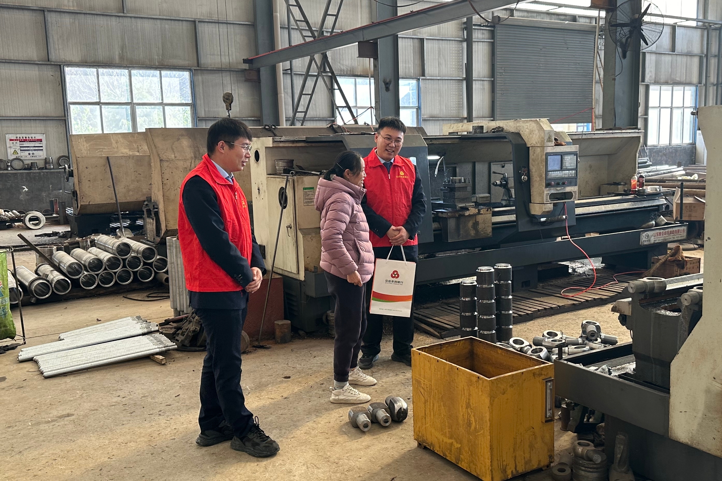 岱岳农商银行客户经理在生产车间了解企业生产情况及资金需求 岱岳农商银行供图