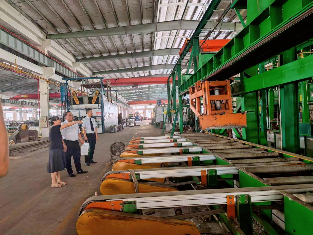宏兴铝业负责人向邮储银行信贷客户经理介绍更新换代的生产线 邮储银行江门市分行供图