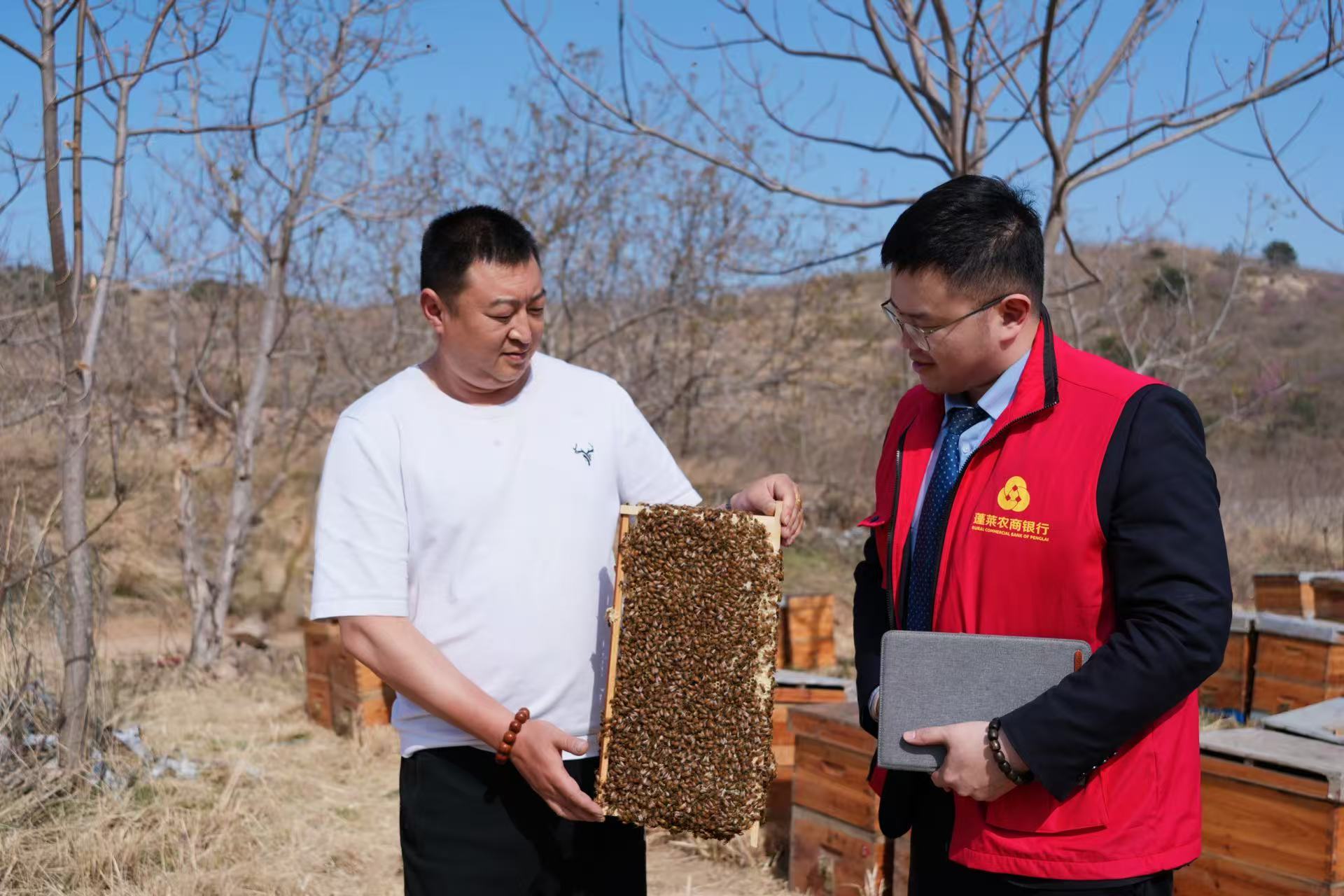 蓬莱农商银行客户经理上门查看蜜蜂养殖情况 蓬莱农商银行供图