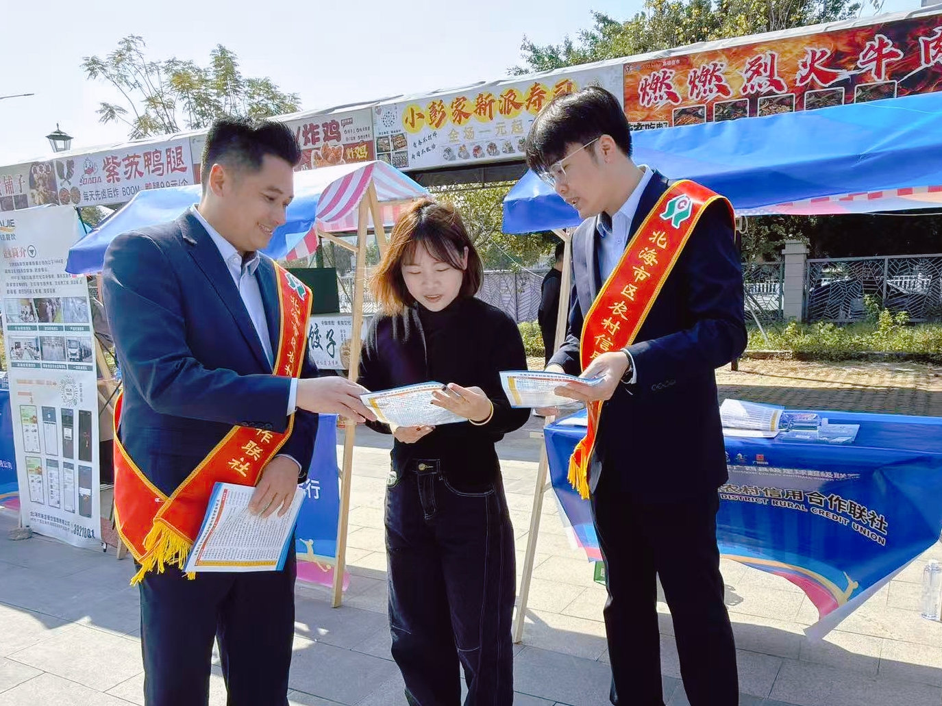 图为北海市区联社工作人员向群众发放宣传资料 北海市区联社/供图