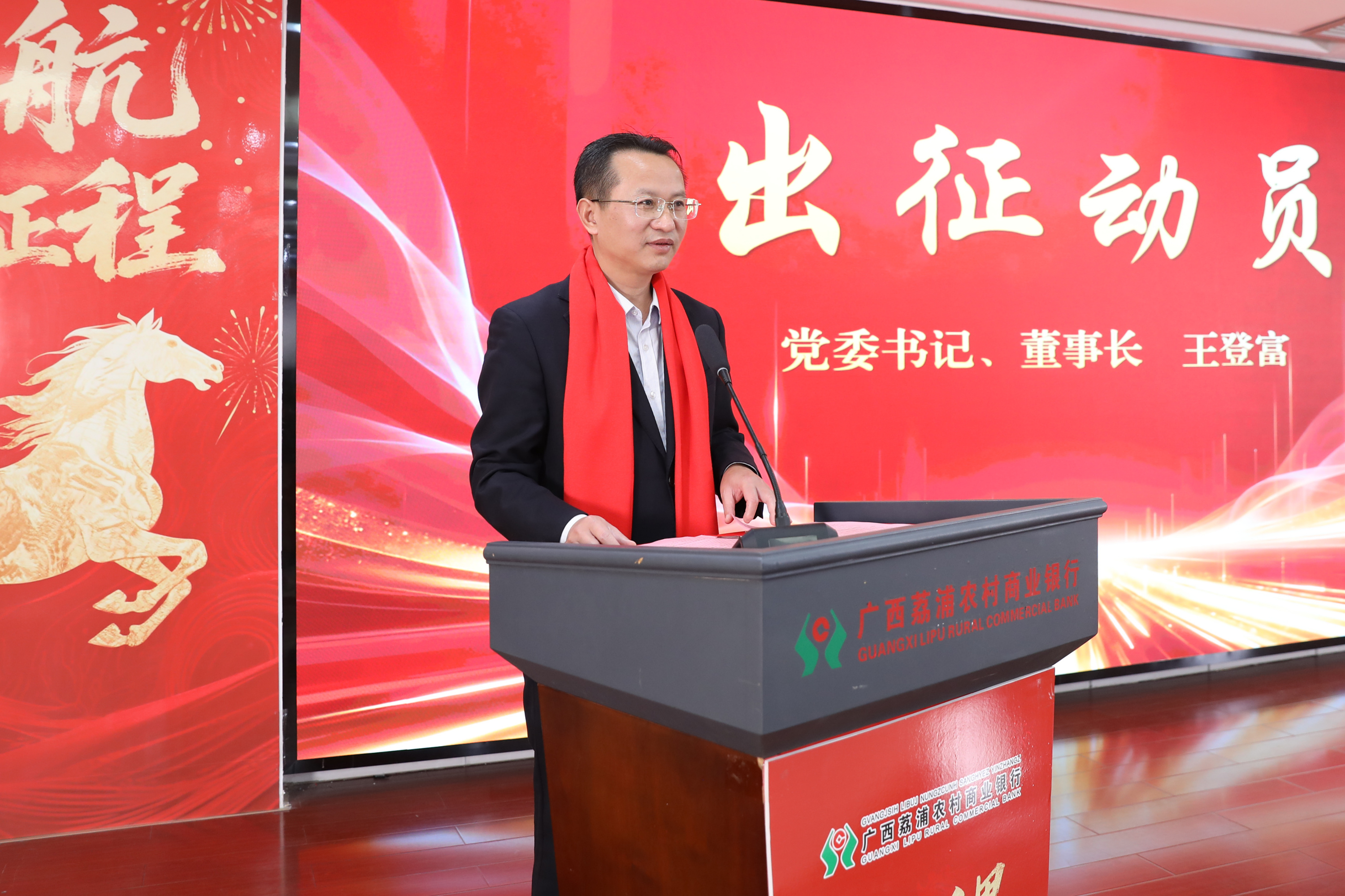 荔浦农商银行党委书记、董事长王登富为2026年春季金融服务启动会发布出征动员令。他表示,2026年春季金融服务,是响应上级部署、抢抓旺季营销的“关键一役”,要发挥本土优势、提升市场竞争力,以奋进姿态打赢首季战役。