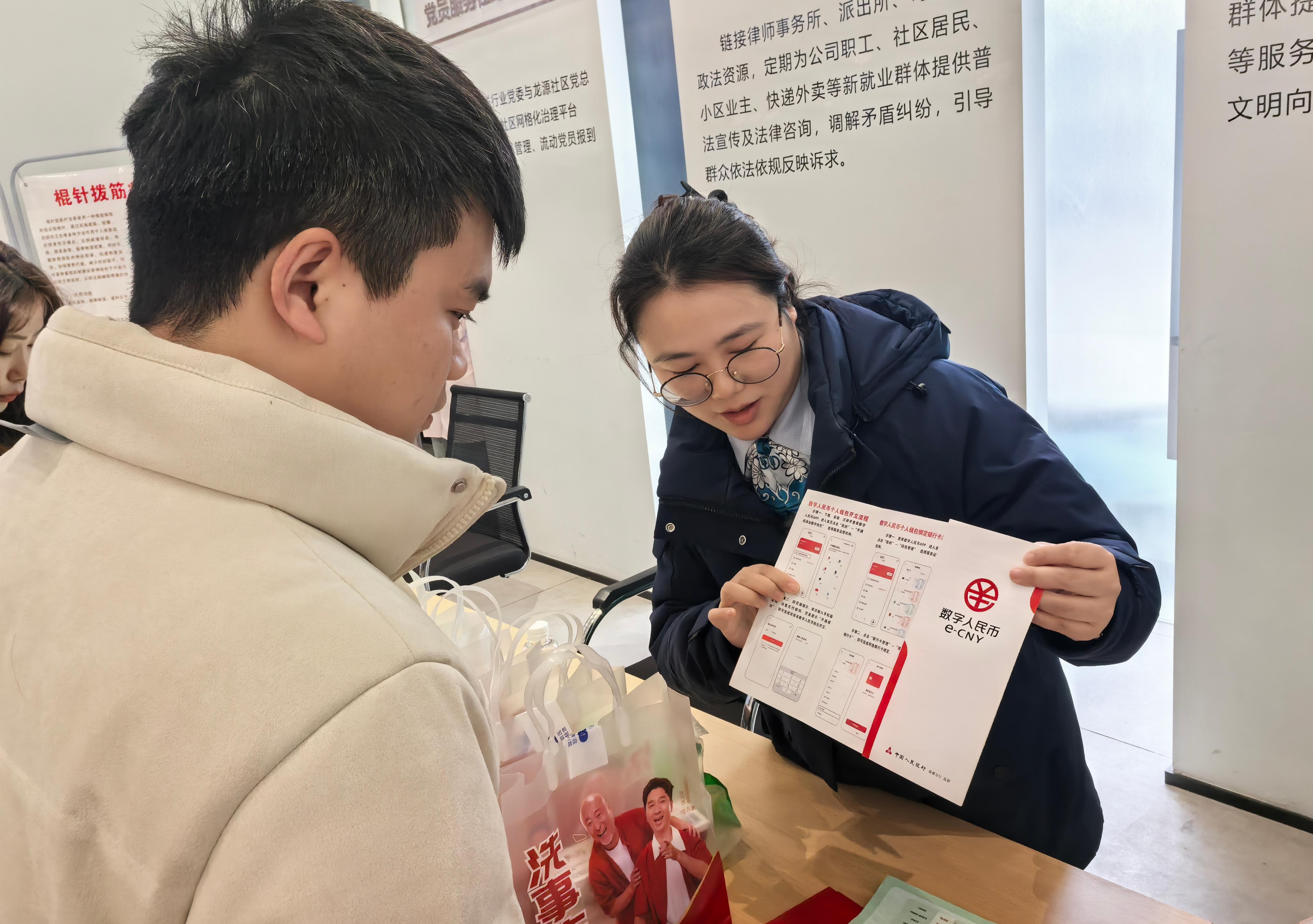 活动现场,农业银行宜宾翠屏支行员工向企业职工普及数字人民币知识。农业银行宜宾翠屏支行供图