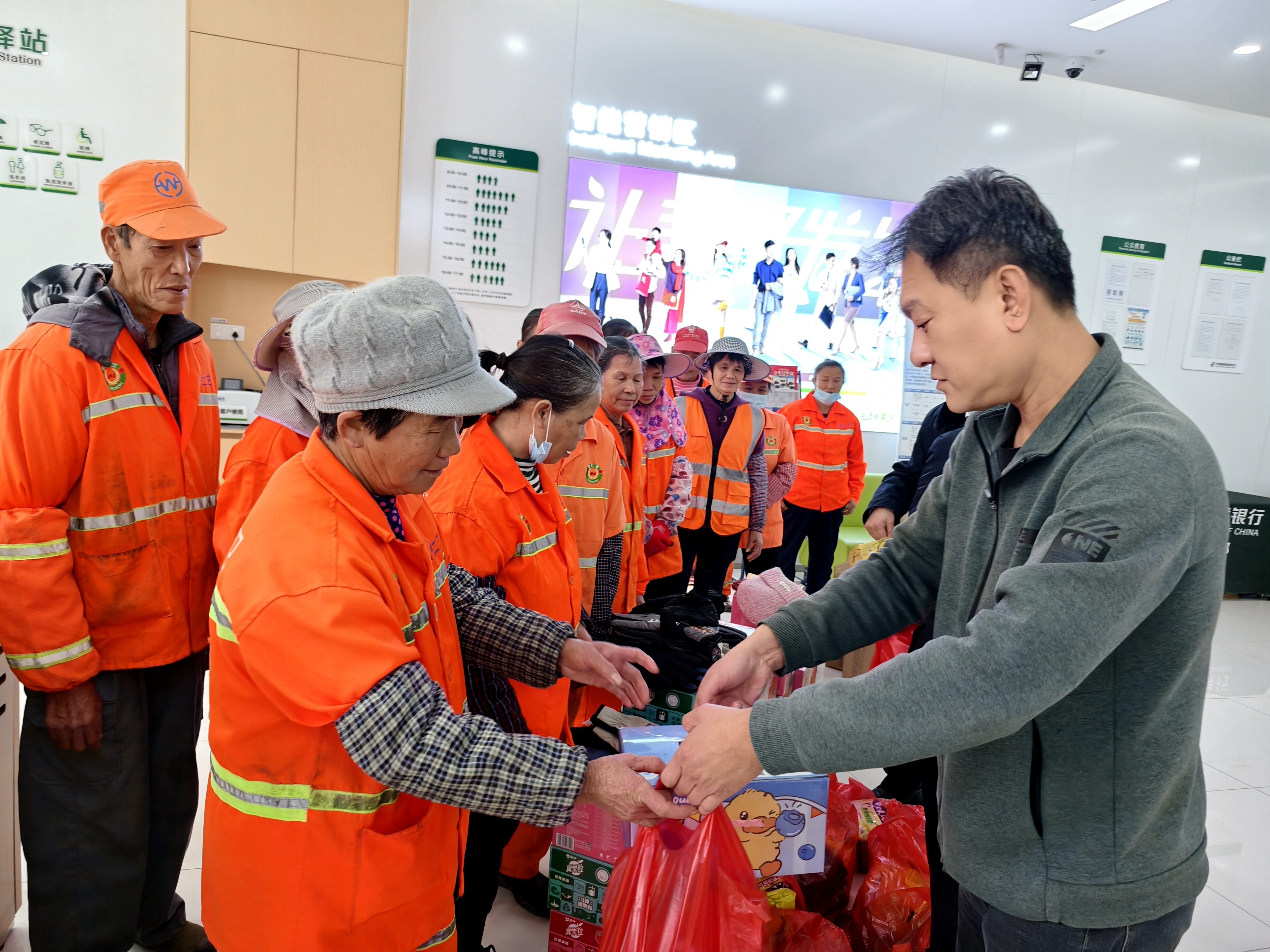 近日,中国邮政储蓄银行钟山县支行联合钟山县总工会,在支行“邮爱驿站”举办暖“新”服务季慰问活动,为30名环卫工人、外卖骑手、快递员等劳动者送上热乎早餐与新春礼包,以实际行动传递工会“娘家人”与金融机构的双重关怀。钟山县总工会党组成员、财务资产管理部部长张强,邮储银行钟山县支行副行长黎源及有关人员出席活动。