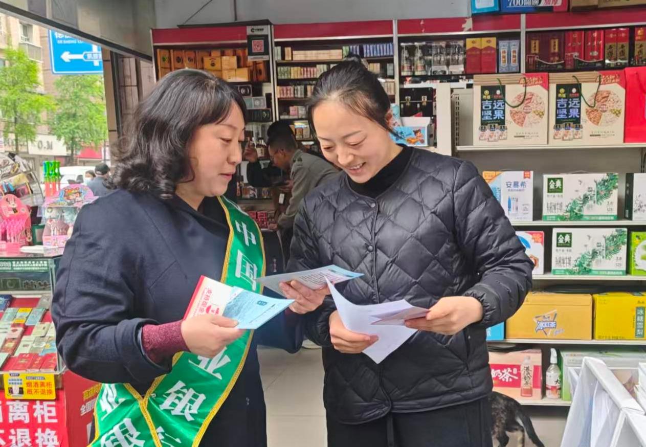 农行遂宁分行工作人员向商户宣传普及人民币图样管理相关规定 农行遂宁分行供图