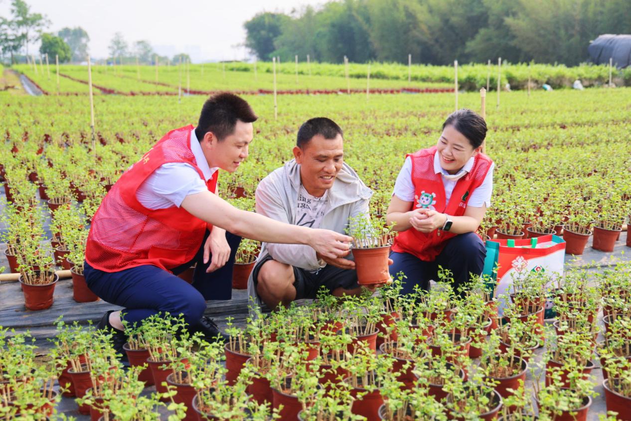 客户经理走进田间查看花苗生长情况 横州农信联社供图