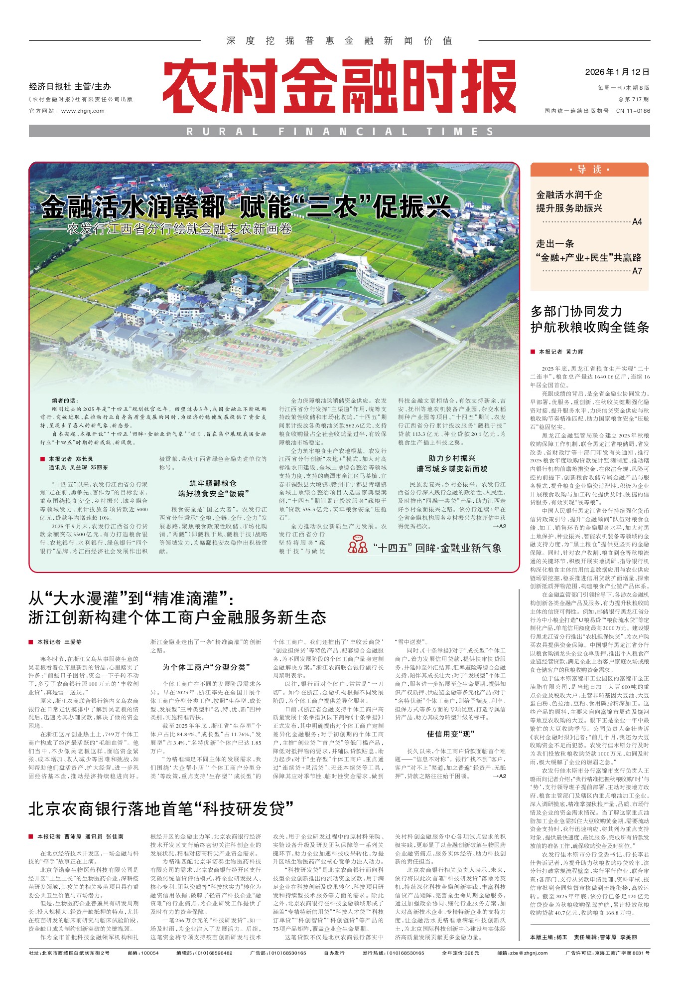 中国人民银行黑龙江省分行持续强化货币信贷政策引导,提升“金融顾问”队伍对粮食仓储、加工、销售环节的金融服务水平,加大对黑土地保护、种业振兴、智能农机装备等领域的金融支持力度,为“黑土粮仓”提供更坚实的金融保障。同时,针对农户收割、粮食到仓等秋粮流通的关键环节,积极开展实地调研,指导银行机构深化粮食主体信用信息数据应用与农业供应链场景挖掘,稳妥推进信用贷款扩面增量、探索创新抵质押物范围,构建粮食产业链产品体系。