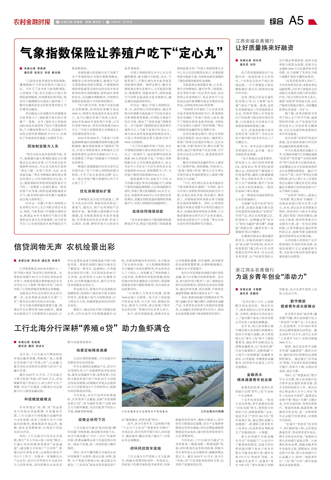 “之前淡水鱼养殖没有保险保障,遭遇极端天气带来的损失只能自己扛。今年买了淡水鱼气象指数保险,心里就有了底,受灾后能从中国人寿财险拿到赔款,有效降低经营风险,现在终于能踏踏实实地安心搞养殖了。”滕州市鑫泽滨农业科技发展有限公司经理刘启超说。