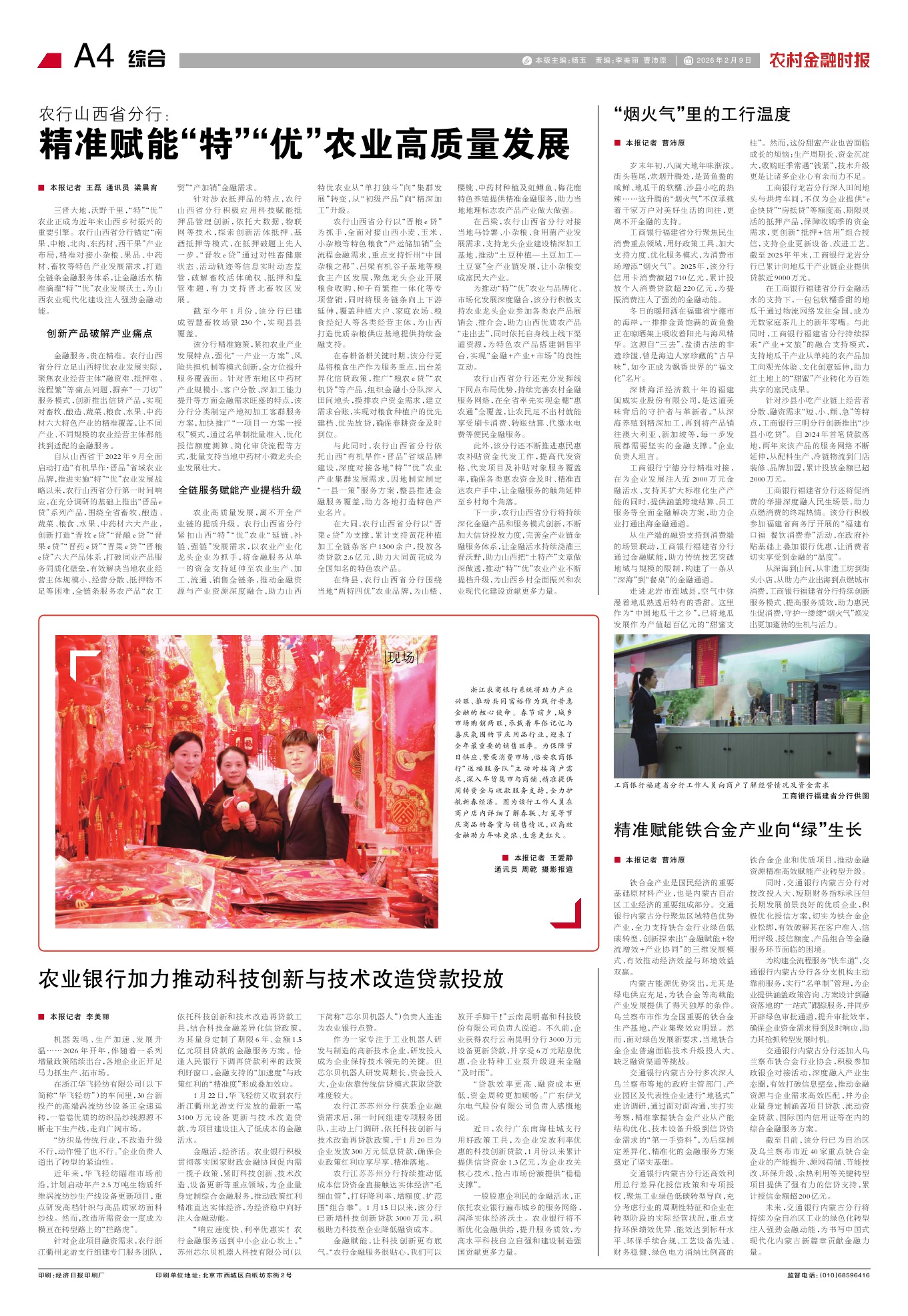 一股股惠企利民的金融活水,正依托农业银行遍布城乡的服务网络,润泽实体经济沃土。农业银行将不断优化金融供给,提升服务质效,为高水平科技自立自强和建设制造强国贡献更多力量。