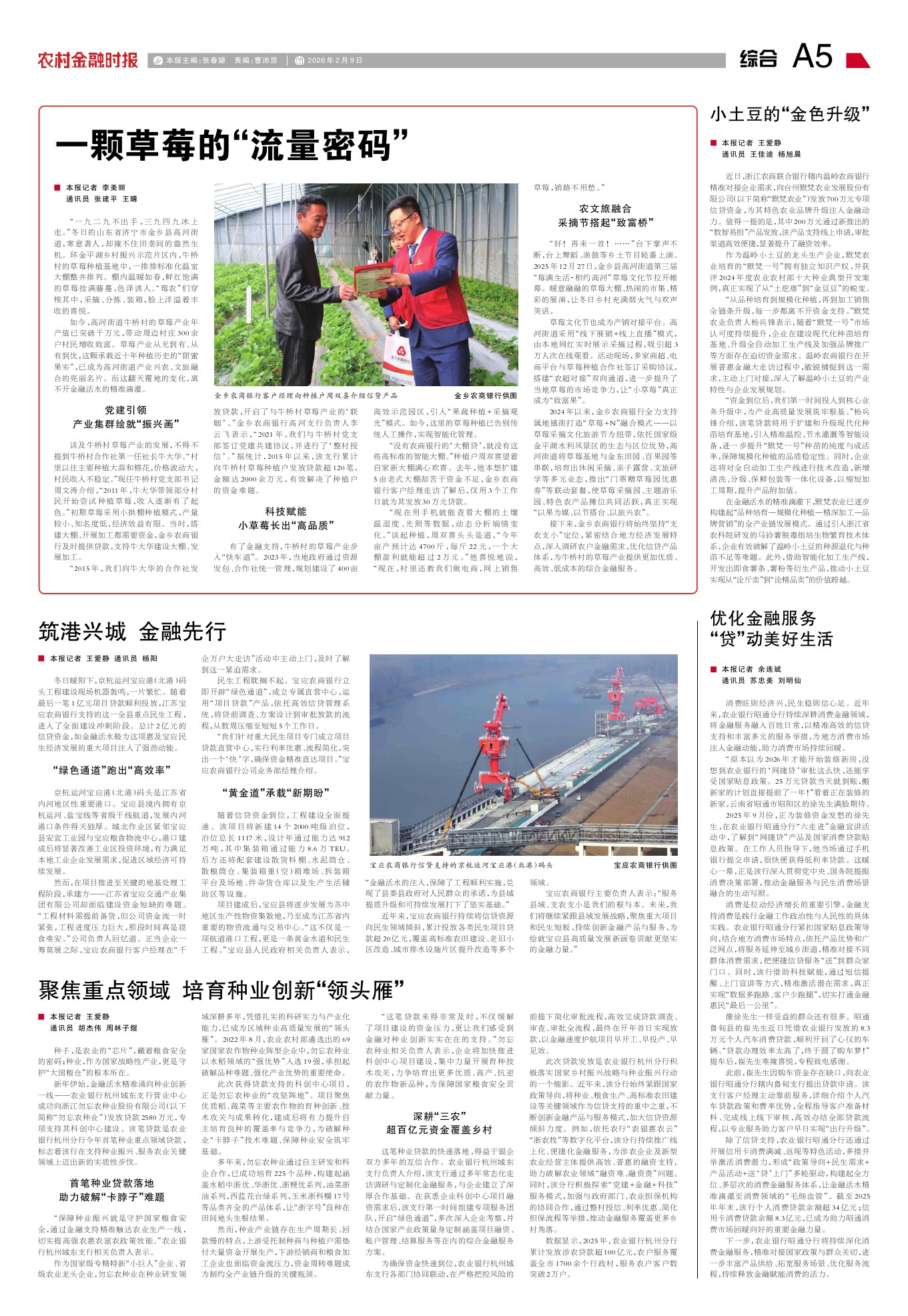 如今,高河街道牛桥村的草莓产业年产值已突破千万元,带动周边村庄300余户村民增收致富。草莓产业从无到有、从有到优,这颗承载近十年种植历史的“甜蜜果实”,已成为高河街道产业兴农、文旅融合的亮丽名片。而这翻天覆地的变化,离不开金融活水的精准滴灌。