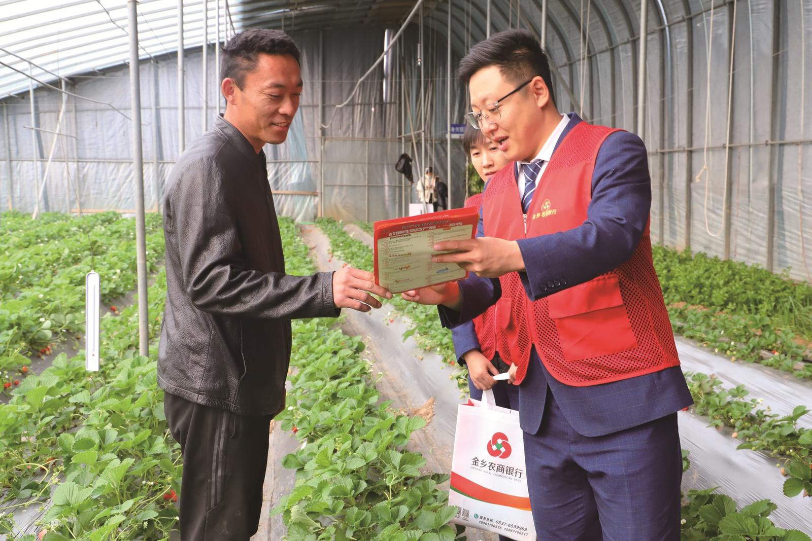 金乡农商银行客户经理向种植户周双喜介绍信贷产品 金乡农商银行供图
