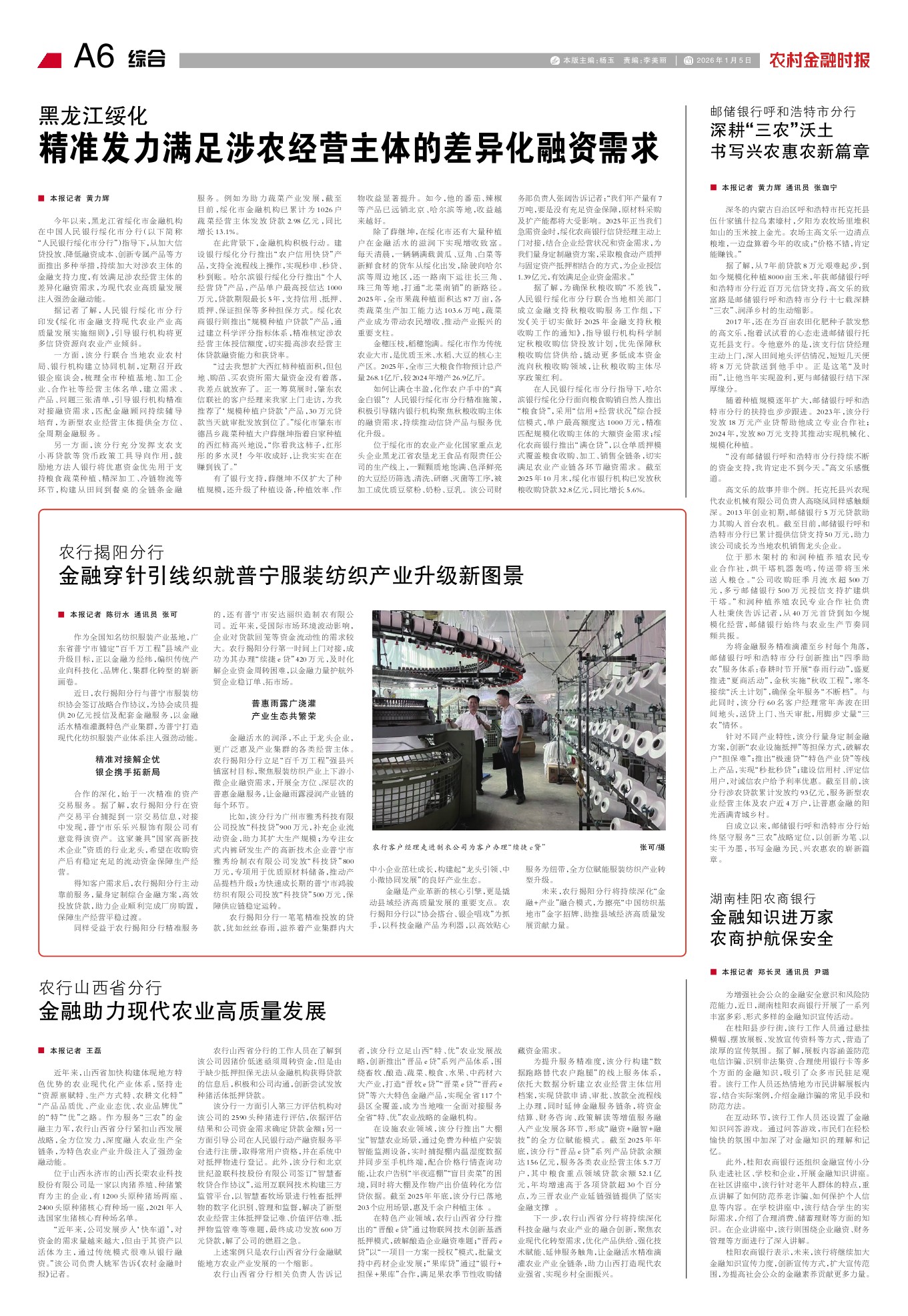 据记者了解,人民银行绥化市分行印发《绥化市金融支持现代农业产业高质量发展实施细则》,引导银行机构将更多信贷资源向农业产业倾斜。