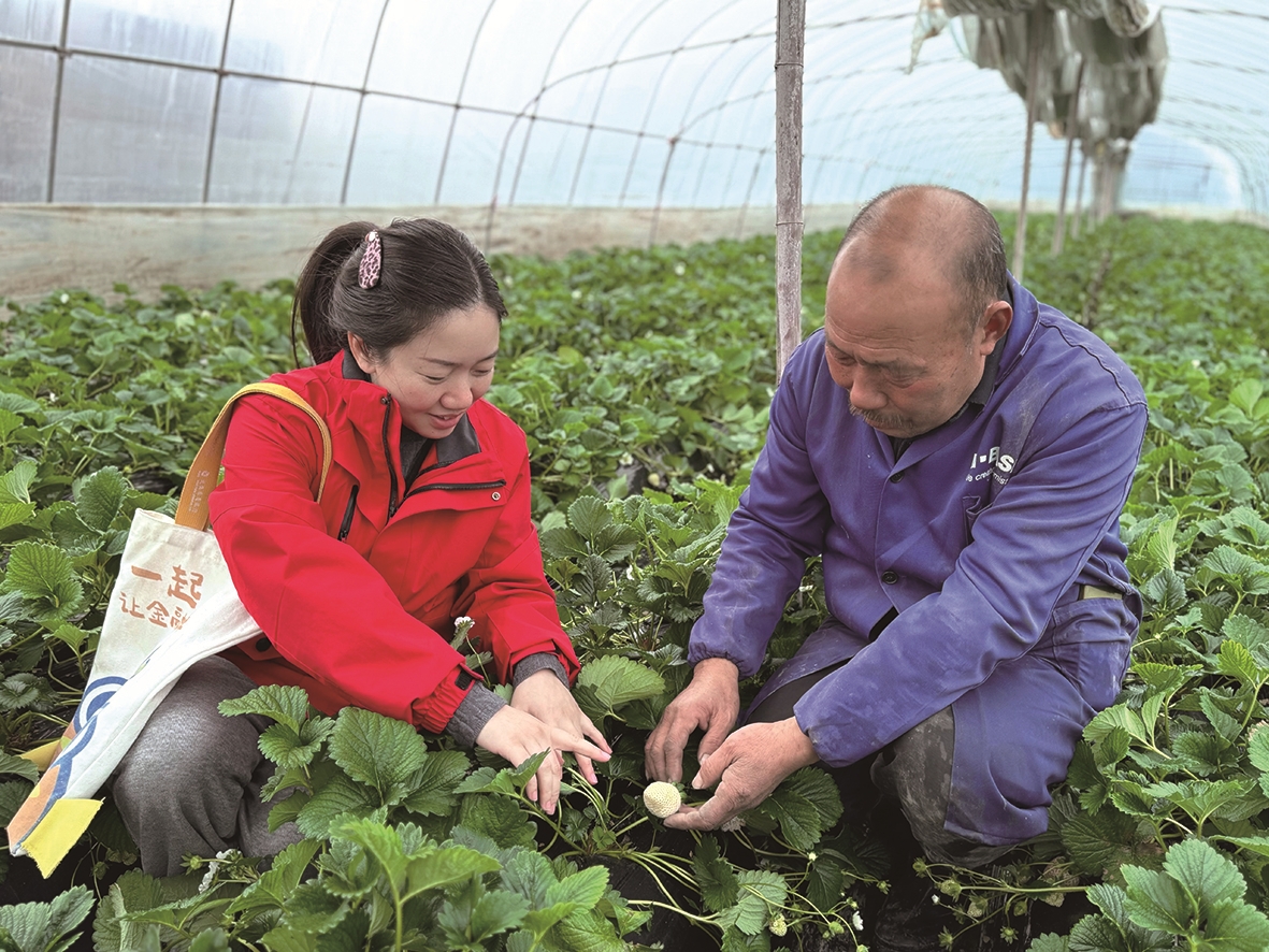 建德农商银行客户经理走访草莓种植农户,了解春耕备耕资金需求。通讯员 童凡/摄