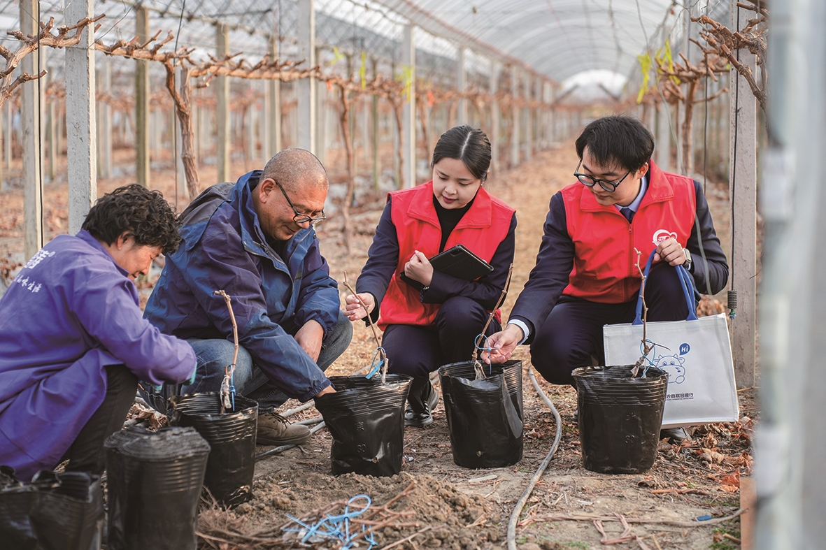 为全面保障春耕备耕生产资金需求,浙江农商联合银行辖内禾城农商银行以开展“深化基础金融服务三年走访行动”为契机,以客户为中心下沉服务重心,聚焦农业主体多元服务需求,主动优化产品、提升效能,将金融活水精准引向春耕一线。图为该行农村金融服务专员走访辖内葡萄种植大棚,了解新品种扩种进度,全面摸排农户融资需求,以暖心服务助力春季农业生产开好局、起好步。